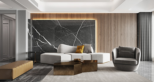 If you wish for a luxurious atmosphere, vote for large format tiling, which requires special techniques and expertise. (From 100 x 100 cm tile size.)